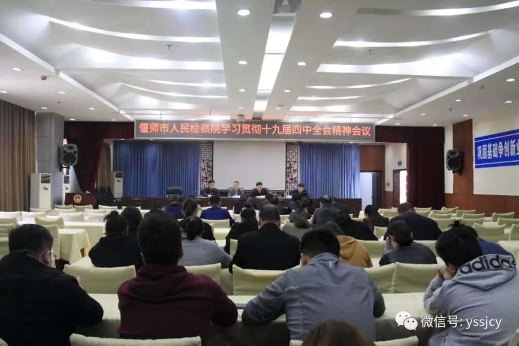 11月8日,偃师区人民检察院召开全体干警大会,学习贯彻党的十九届四中全会精神。